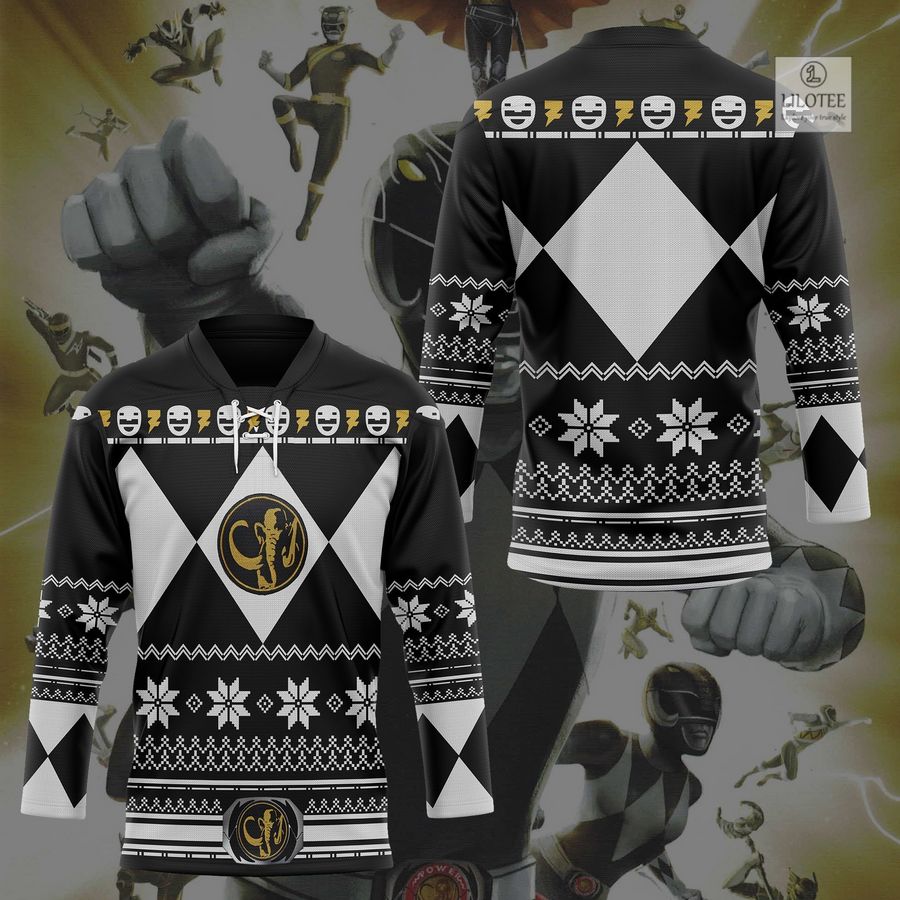 BEST Black Mighty Morphin Power Ranger Ugly Hockey Jersey