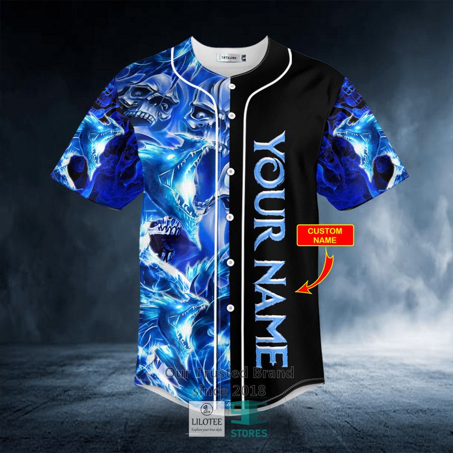 Blue Liquid Skull Custom Baseball Jersey