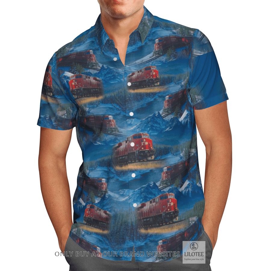 Canadian Locomotive Railway Trains Short Sleeve Hawaiian Shirt