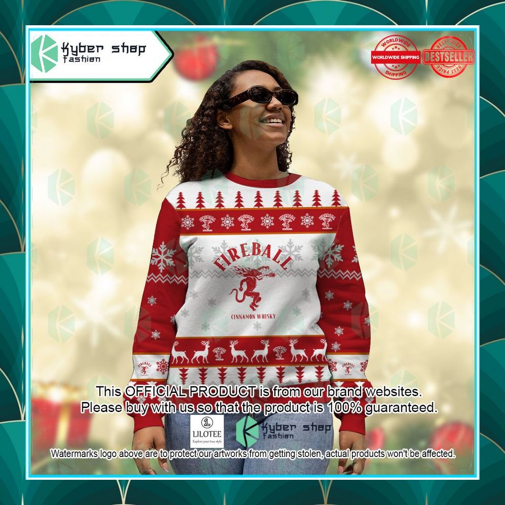 Fireball Cinnamon Whisky Custom Name ugly Sweater