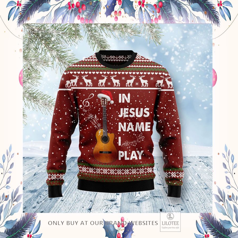 In Jesus Name I Play Guitar Ugly Christmas Sweater – LIMITED EDITION
