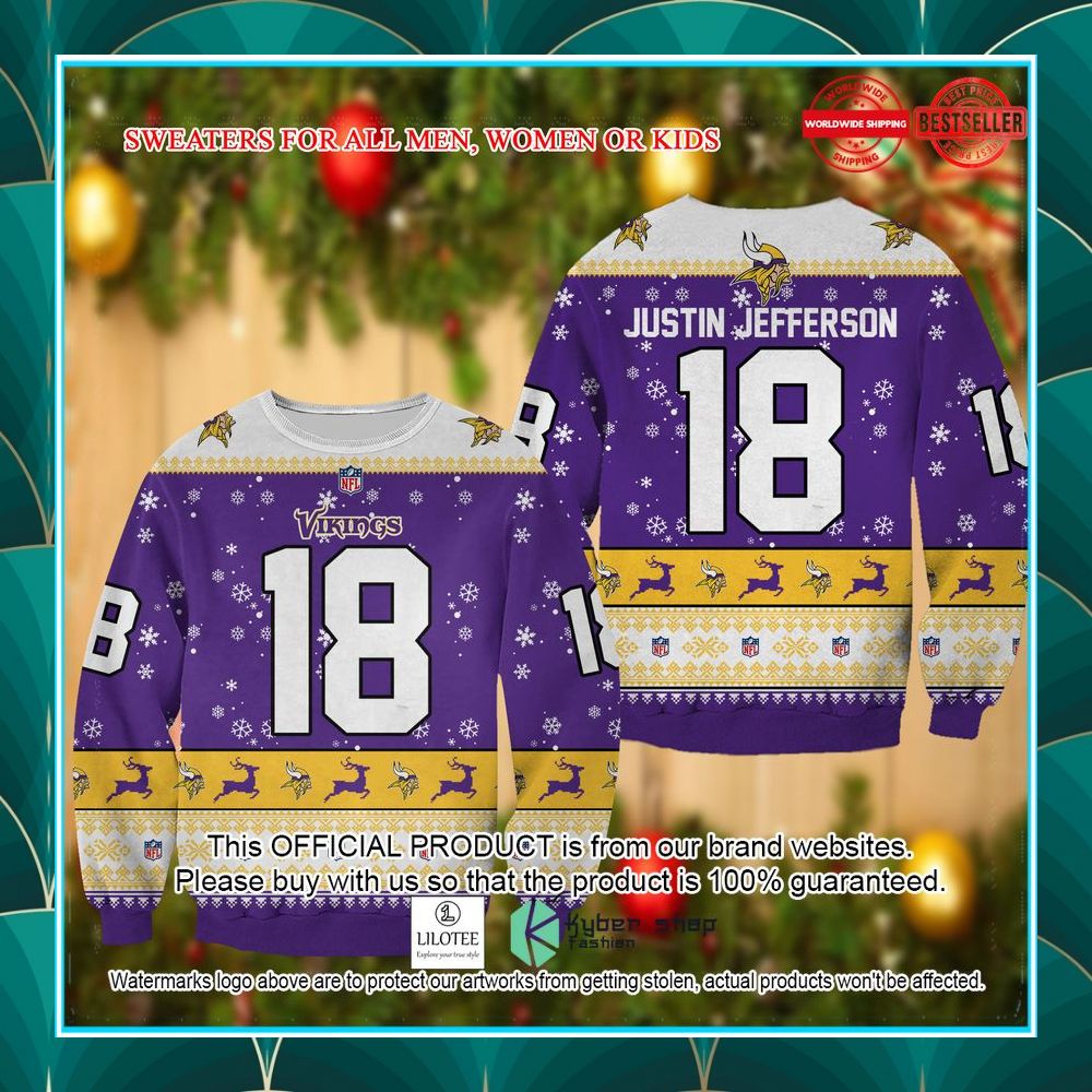 Justin Jefferson Minnesota Vikings Christmas Sweater – LIMITED EDITION