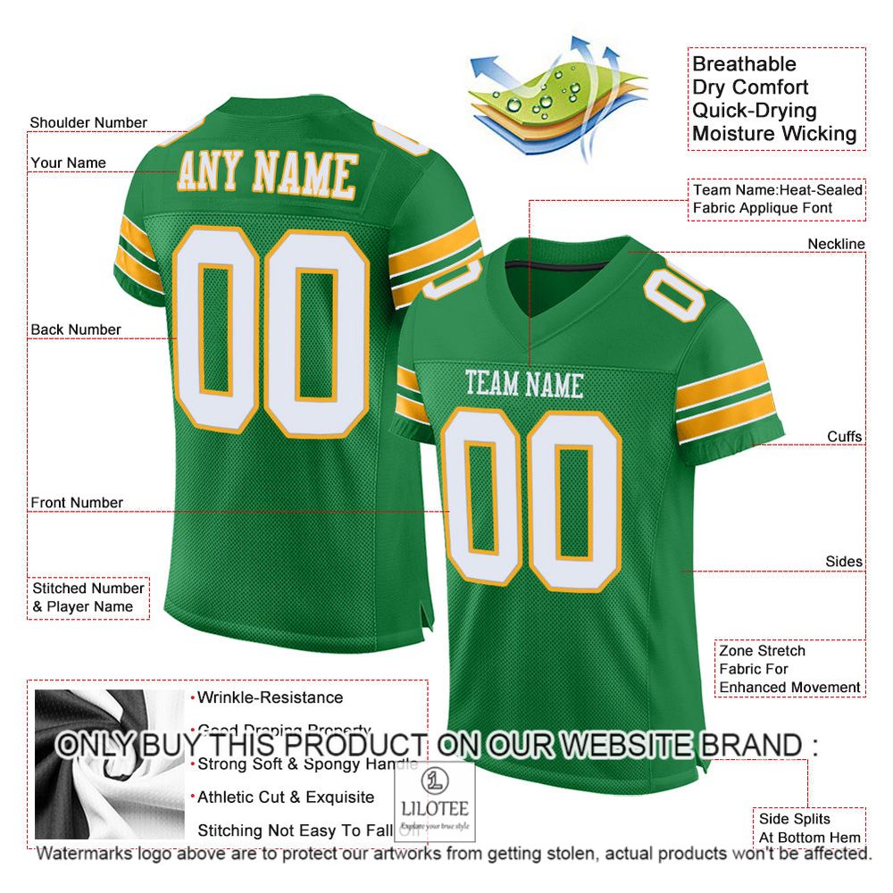 Kelly Green White-Gold Color Mesh Authentic Personalized Football Jersey – LIMITED EDITION