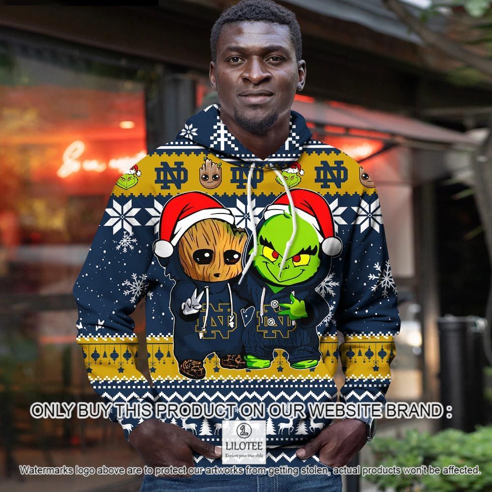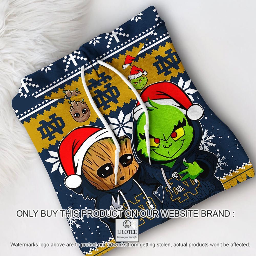 NCAA Notre Dame Fighting Irish Baby Groot and Grinch Christmas 3D Hoodie – LIMITED EDITION