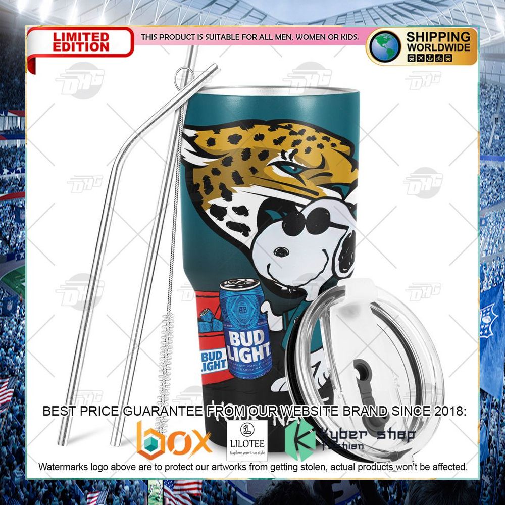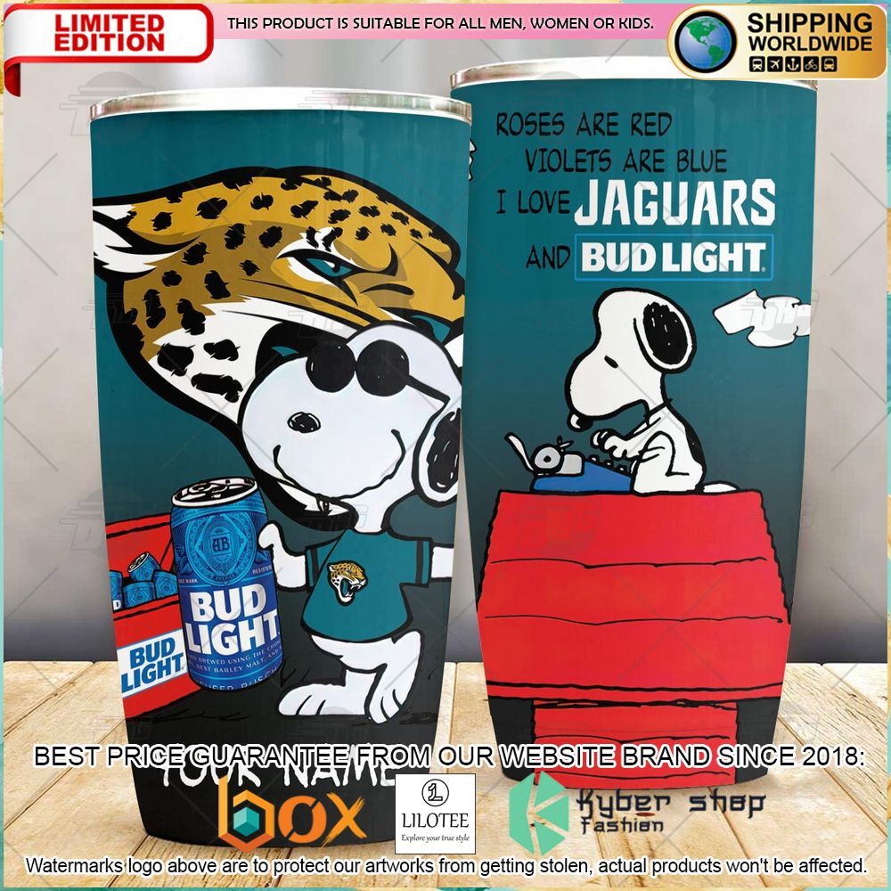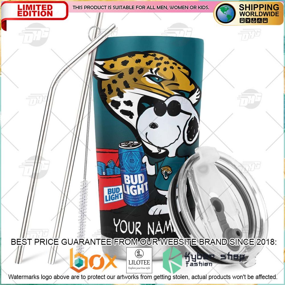 Personalized NFL Jacksonville Jaguars Snoopy Bud Light Beer Tumbler – LIMITED EDITION