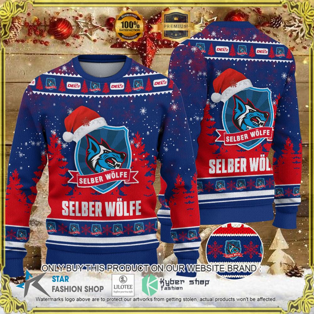 Selber Wölfe Blue Red Christmas Sweater – LIMITED EDITION