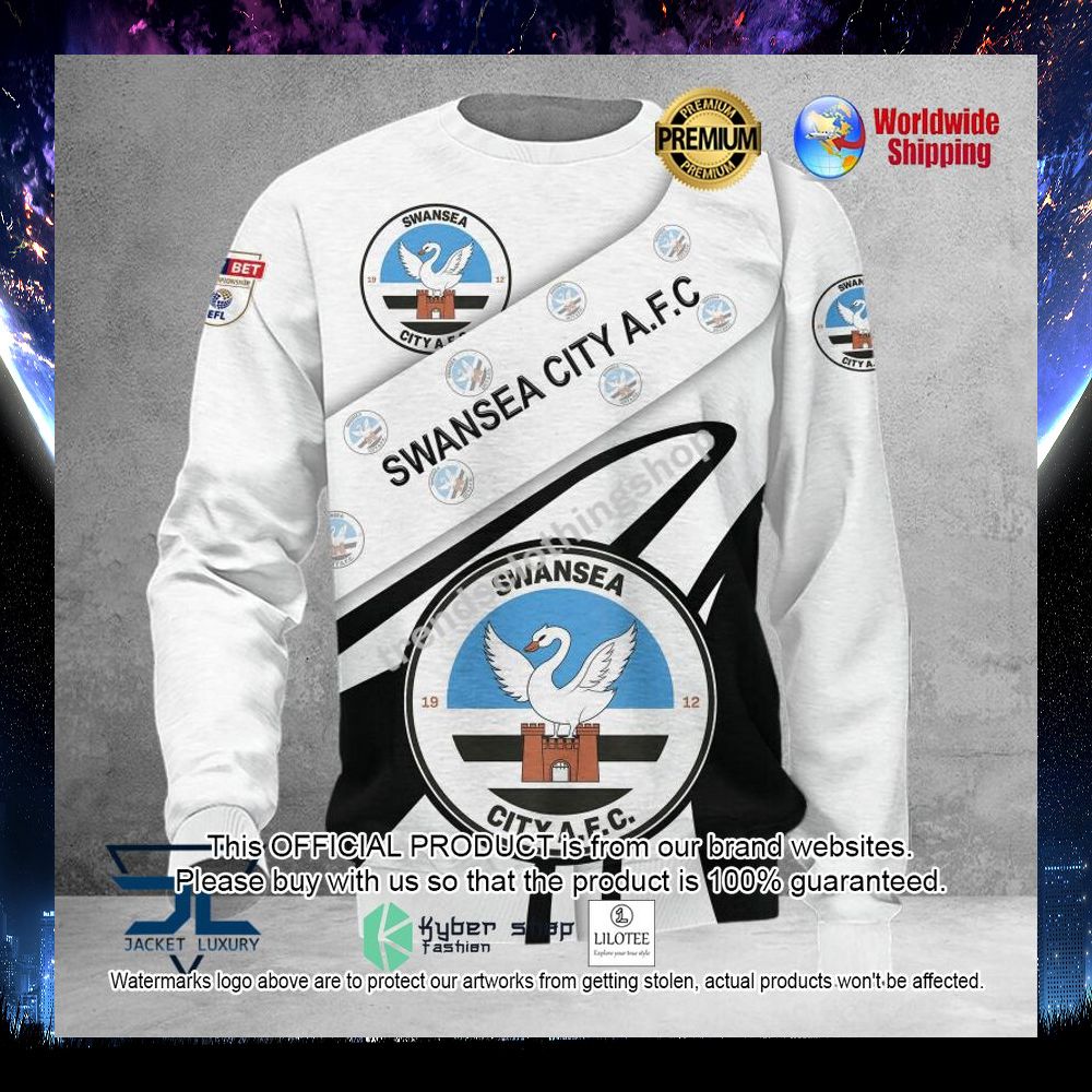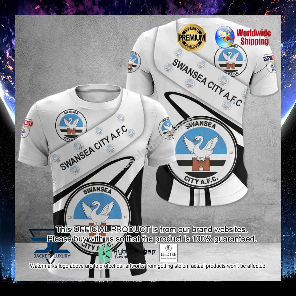 Swansea City A.F.C Black White 3D Hoodie, Shirt