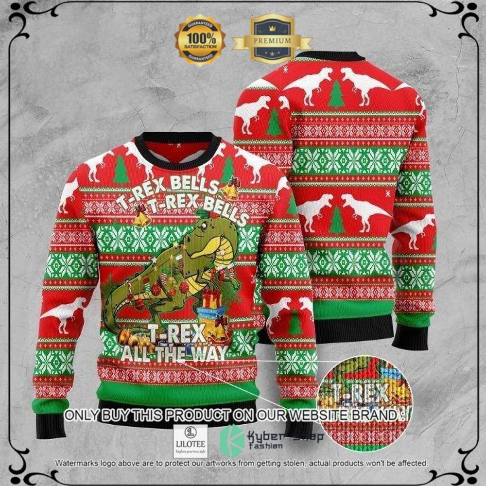 T-Rex Bells T-Rex Bells T-Rex All the Way Christmas Sweater – LIMITED EDITION