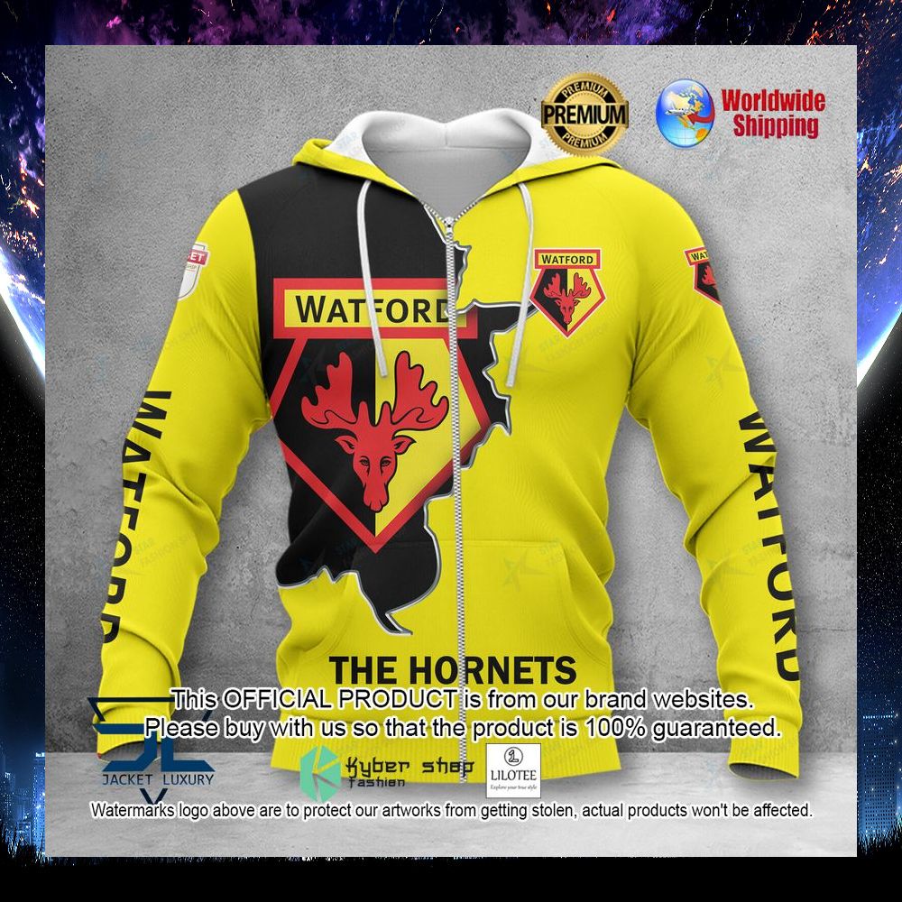 Watford FC Yellow Black 3D Hoodie, Shirt