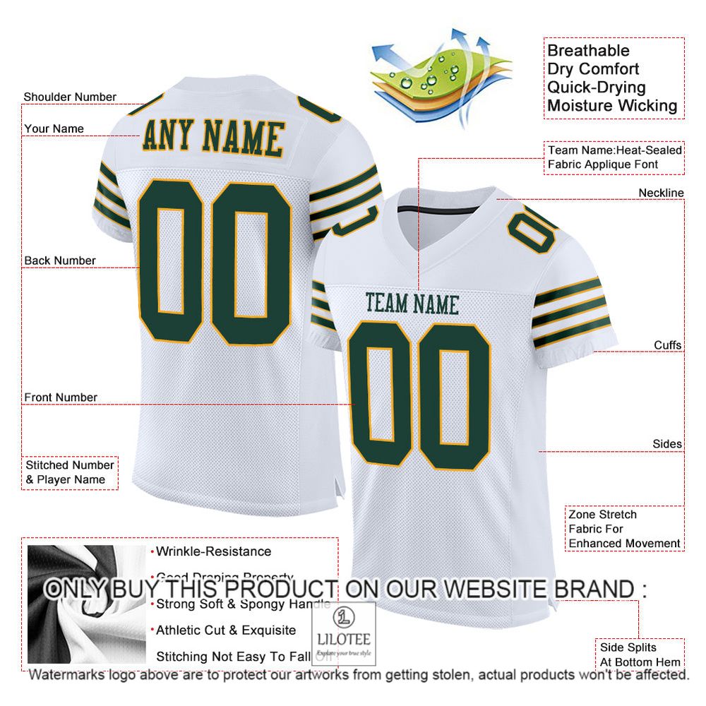 White Green-Gold Mesh Color Authentic Personalized Football Jersey – LIMITED EDITION